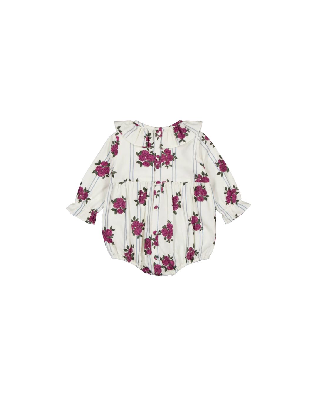 LOIR parisの限定プリント生地(100%コットン)を使用し、プラム色の牡丹とブルーのストライプ柄が特徴です