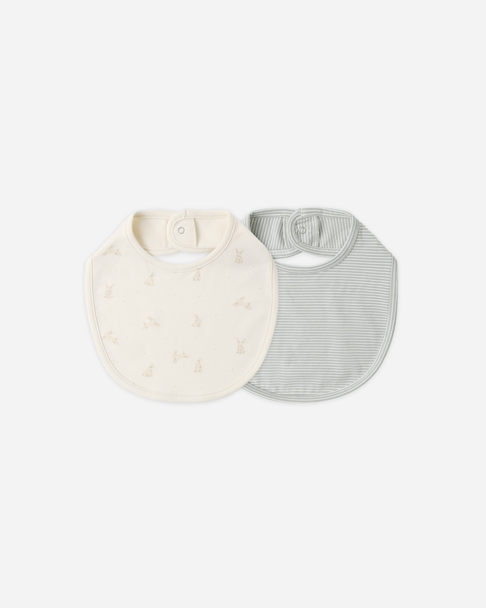 JERSEY SNAP BIB PACK | BUNNIES, SAGE MICROSTRIPE