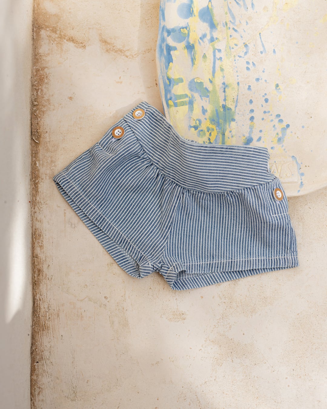 横ストライプがかわいいデニムショートパンツ