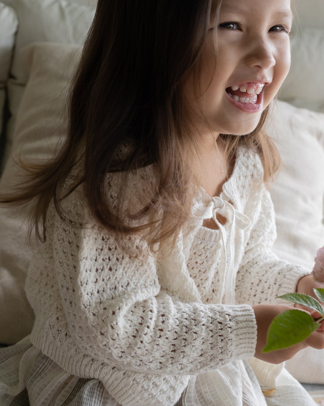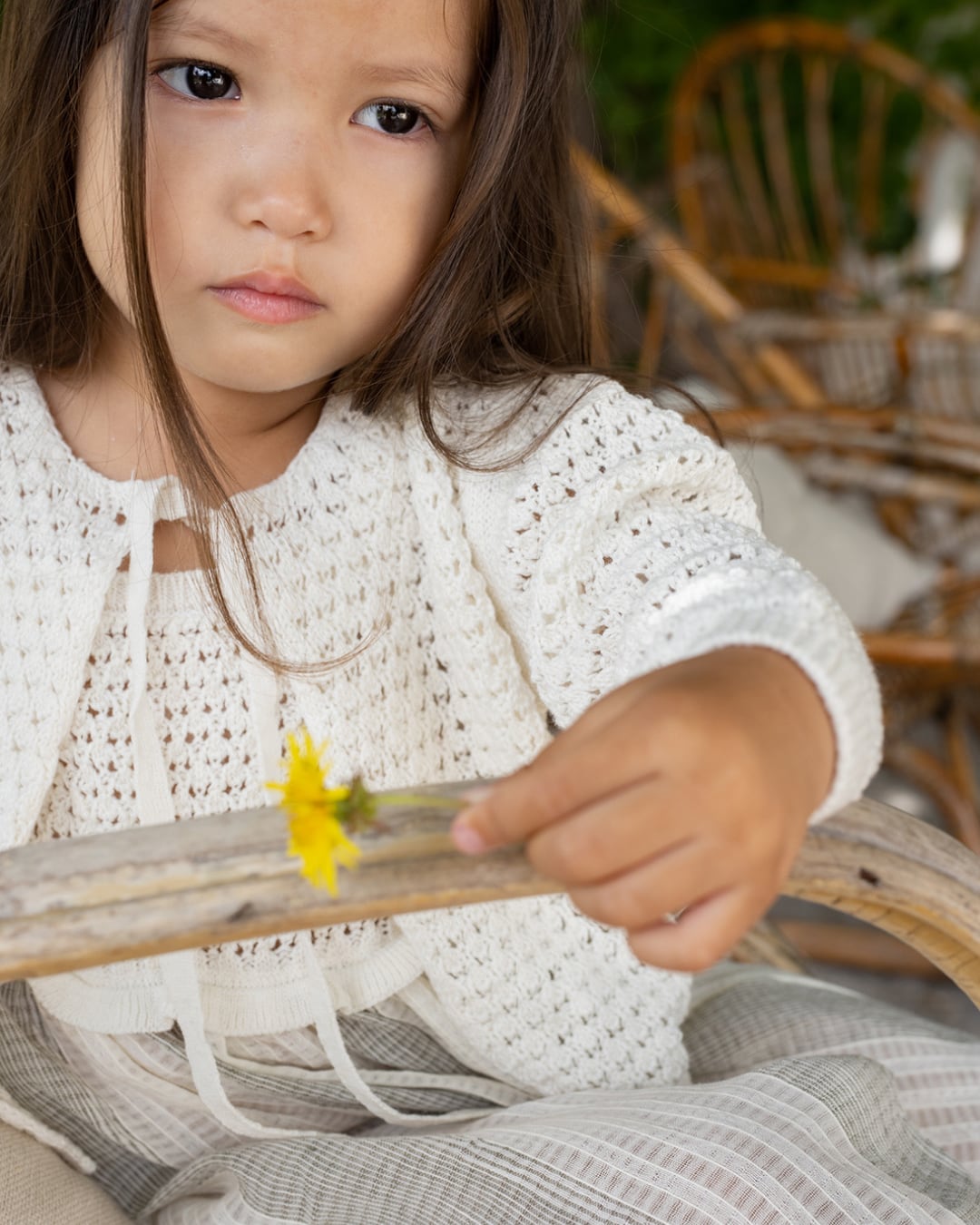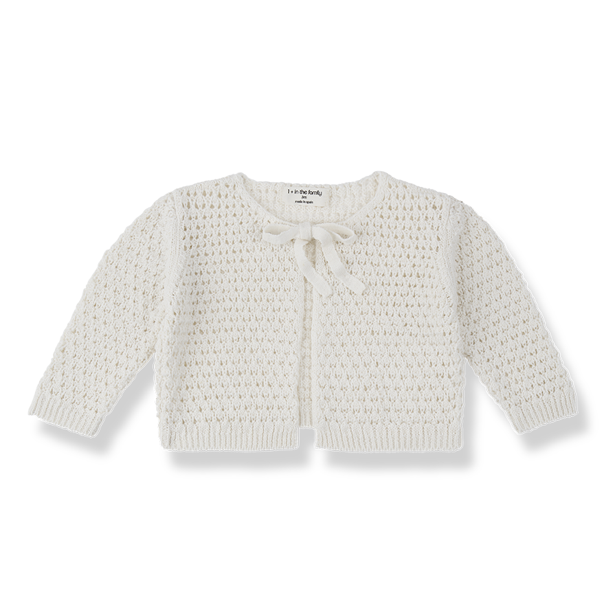 通気性のあるコットンリネン混紡素材で作られた、透かし編みのニットジャケット