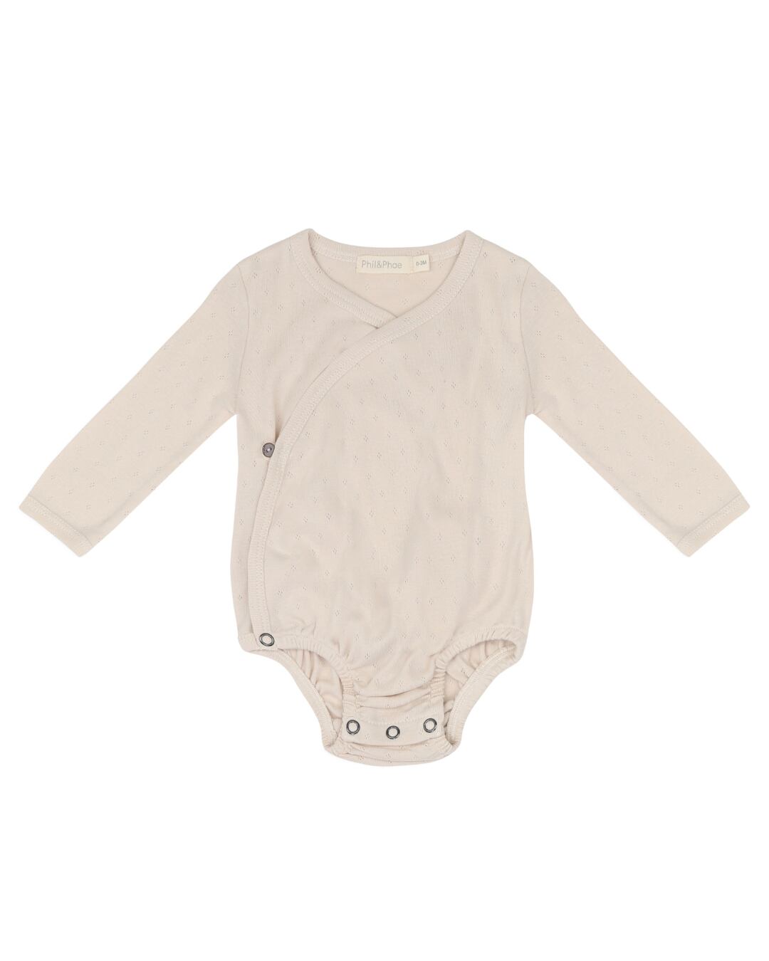 Cross-over body l/s pointelle|Oatmeal【Phil&Phae】