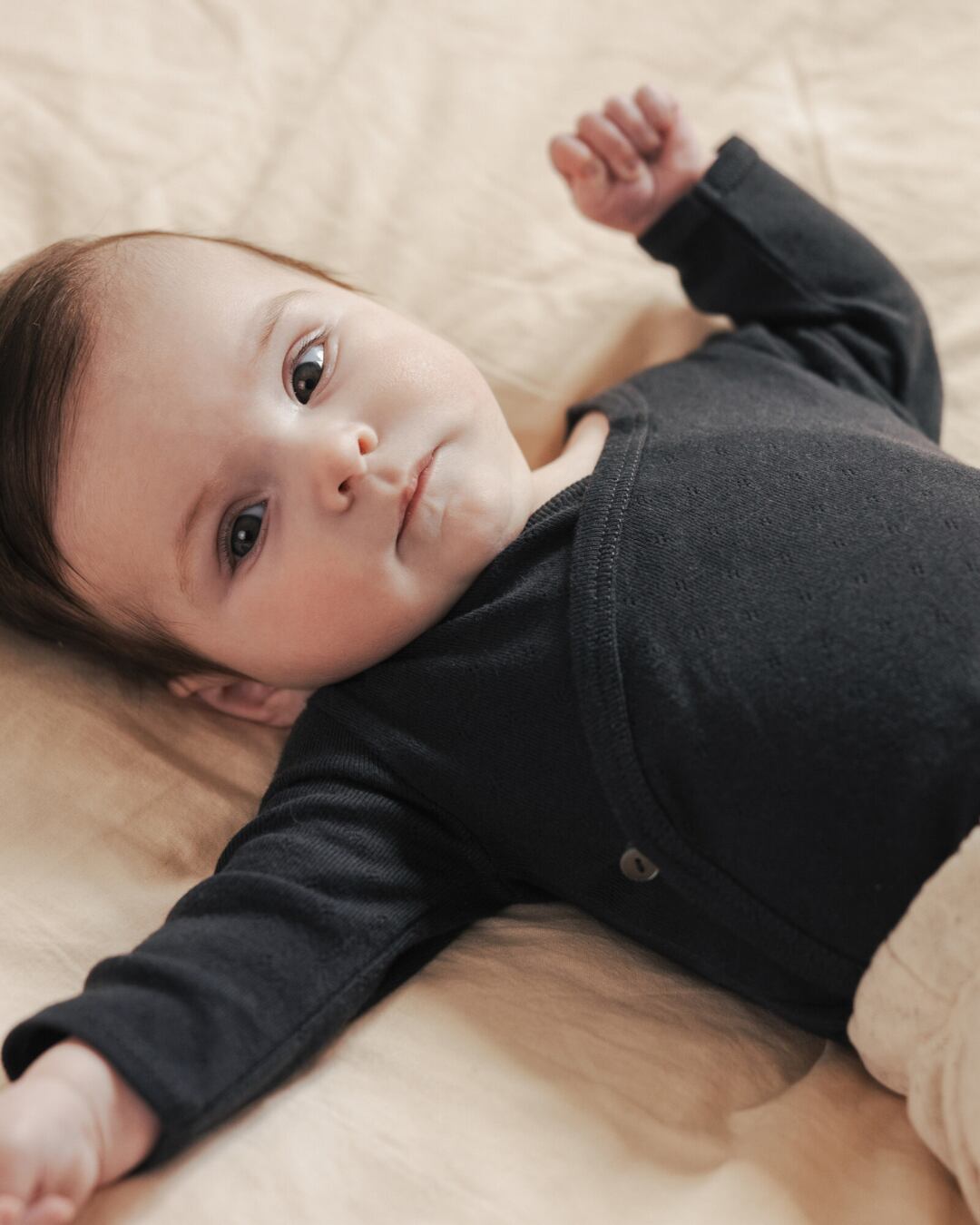 Cross-over body l/s pointelle|Charcoal【Phil&Phae】